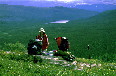 Nach dem Überschreiten des Höhenrückens unter dem Pårtekietje erscheint auf der gegenüberliegenden Seite des Tjaktjajaure die Hochfläche Kabla (ca. 1000 m). Dann erreicht man nach insgesamt ca. 12 km die Schutzhütte Rittak. In der Nähe an dem kleinen Bach gibt es einige schöne Zeltplätze. Richtung Westen kommt der Faunåive (1117 m) ins Blickfeld. Direkt unter seiner Südseite geht der Kungsleden über den Paß am Hornatj. Auch diese Bezeichnung für einen Berg ist auf den Karten Lapplands häufiger zu finden. Hornatj bedeutet in der samischen Sprache: "Ein kleiner Berg, der mit einem großen verbunden ist". Auch kommt man hier wieder an einem Nammatj vorbei, den wir schon im Laitauredelta kennengelernt hatten. Nammatj bedeutet: "Einzelstehender Berg im Tal". Doch zuerst geht es noch über die Brücke des Jåkkejåkåtj. Der Paß am Faunåive ist bei Regen ziemlich unangenehm zu gehen. Der Untergrund besteht aus Blocksteinen, die sich oft beim Darauftreten bewegen. Wenn sie dann durch die Nässe noch rutschig sind, kann eine Sturz mit dem schweren Rucksack schlimme Folgen haben. Vom Paß öffnet sich ein weiter Blick auf die großen Waldflächen Richtung Westen und wieder schneebedeckte Gipfel und Gletscher im Sarek. Irgendwo unten im Wald in ca. 6 km Entfernung am Sabatjakjaure befinden sich die Übernachtungshütten von Pårte.