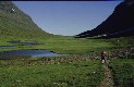 steilen Bergwände, aber auch die großen Grasflächen im Tal bewundern.